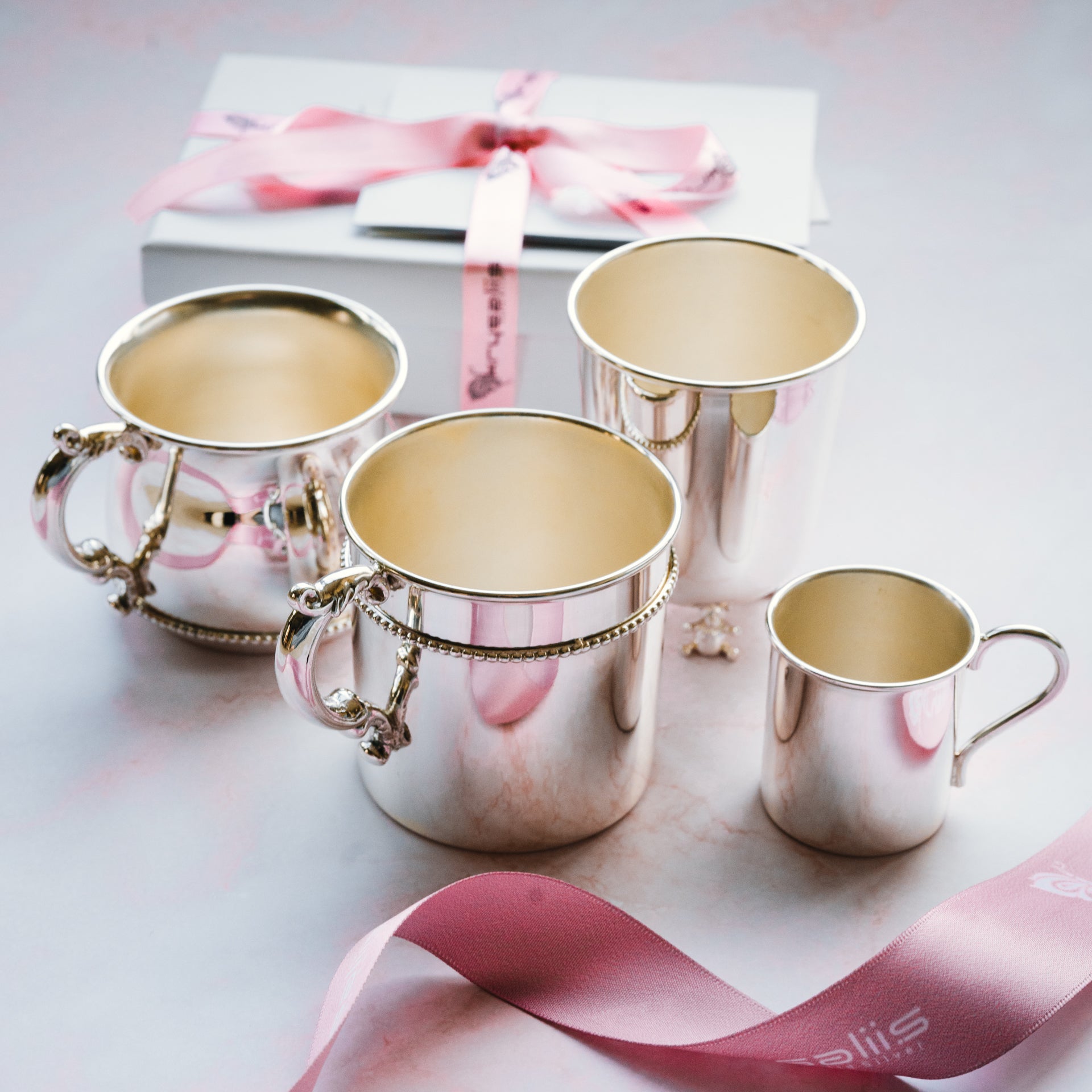 Silver cups and silver mugs were always considered valuable gifts, as was evident in Victorian times when silver gifts were very popular. People often like to gift newborn babies with silver baby cups engraved with names, dates, or initials, making them memorable.
