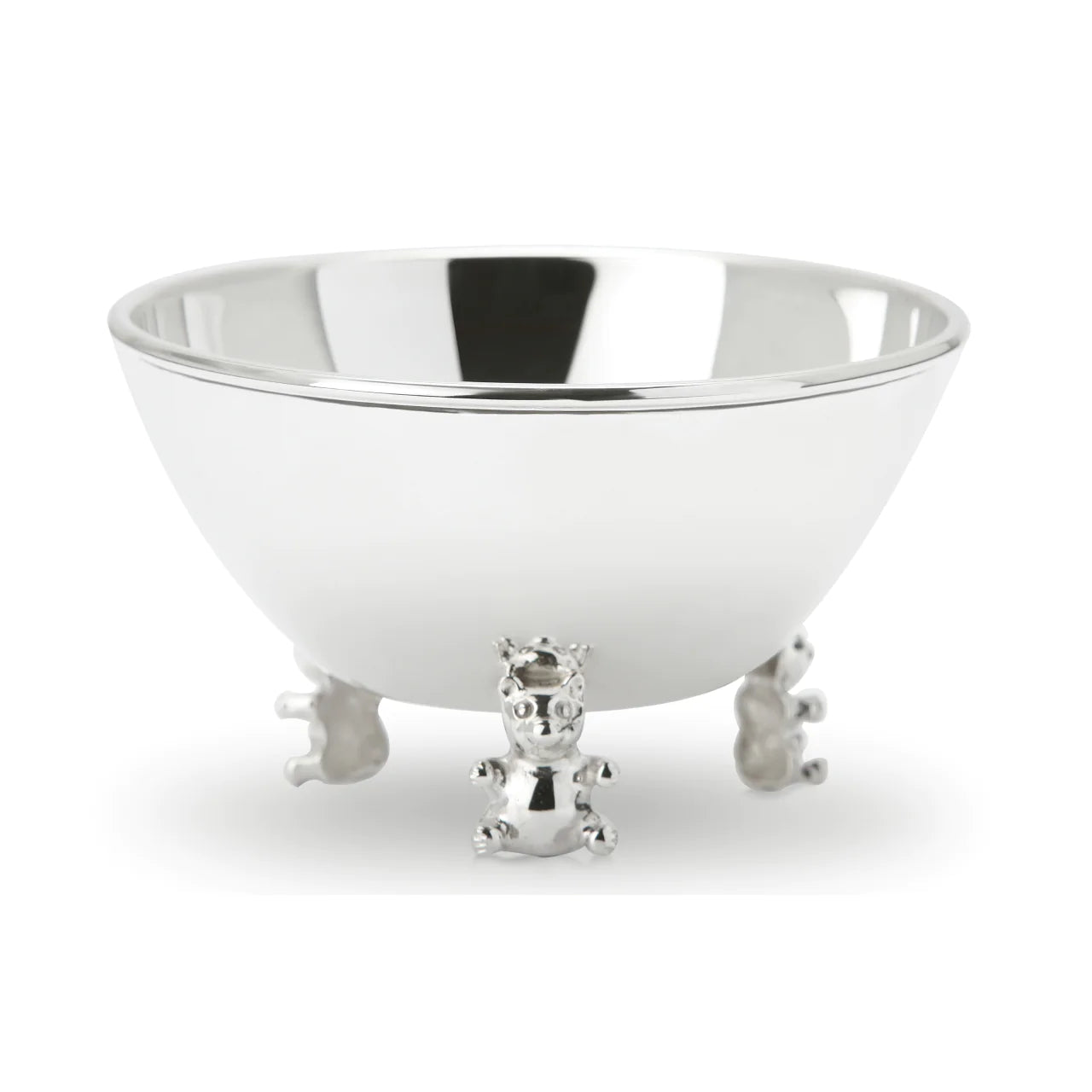 Silver Baby Bowls: A silver baby bowl is a great silver baby gift that will make mealtime more enjoyable and last forever. It can be engraved with a name or date making it more personalized. The bowl has cute animal motifs supporting it and is perfect for first foods. While the baby enjoys their meal, you'll love this silver baby gift's chic and modern style.