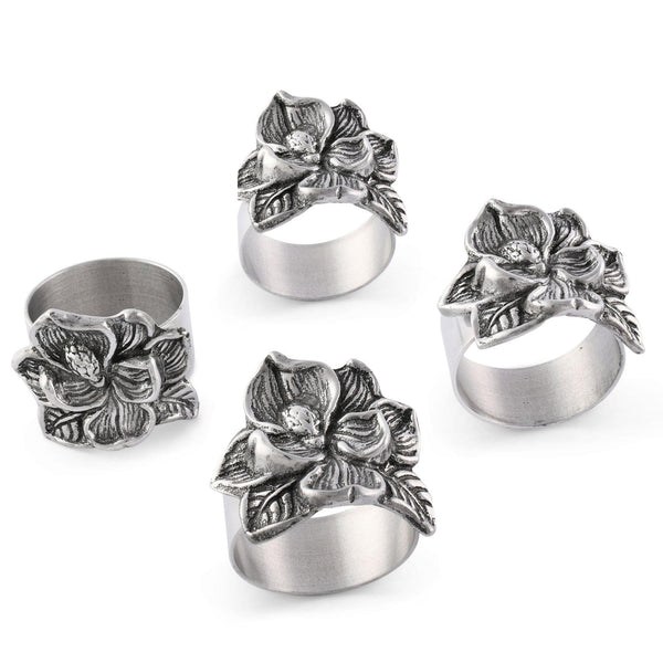 Four beautifully detailed napkin rings are created by Arthur Court. Decorated with the grape motif, the selections are polished brightly and feature the likeness of grape leaves and a petite cluster of fruit. Add decor to dining with the thoughtful accents that mean so much to entertaining.